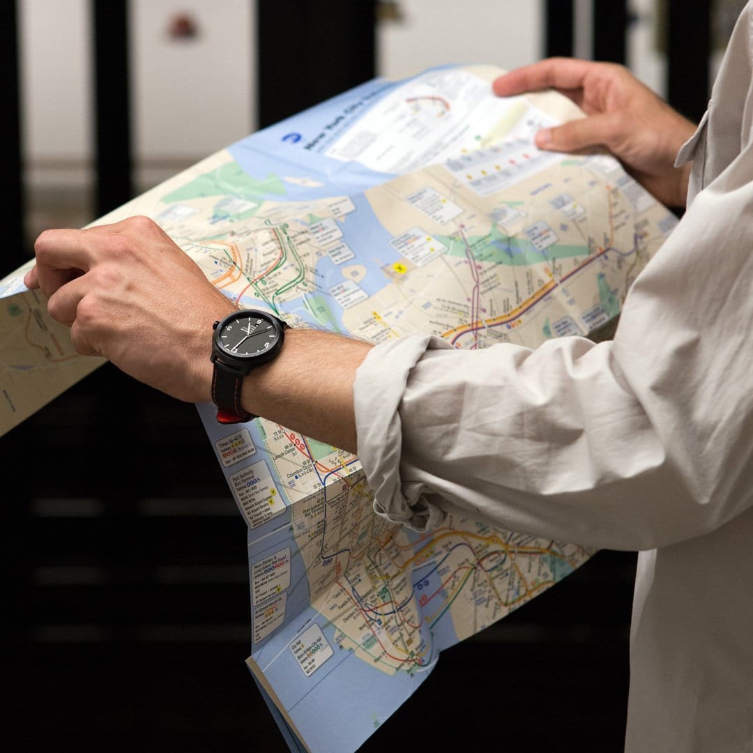 New York feeling. The Helvetica font is used all around the world. One of the most iconic places where the typography is present is the subway in New York. The Mondaine Helvetica No1 Regular New York Edition pays homage to the prominent design of the subway signs. The stainless steel case, the black dial and the red stitched black strap put the watch further into the limelight.