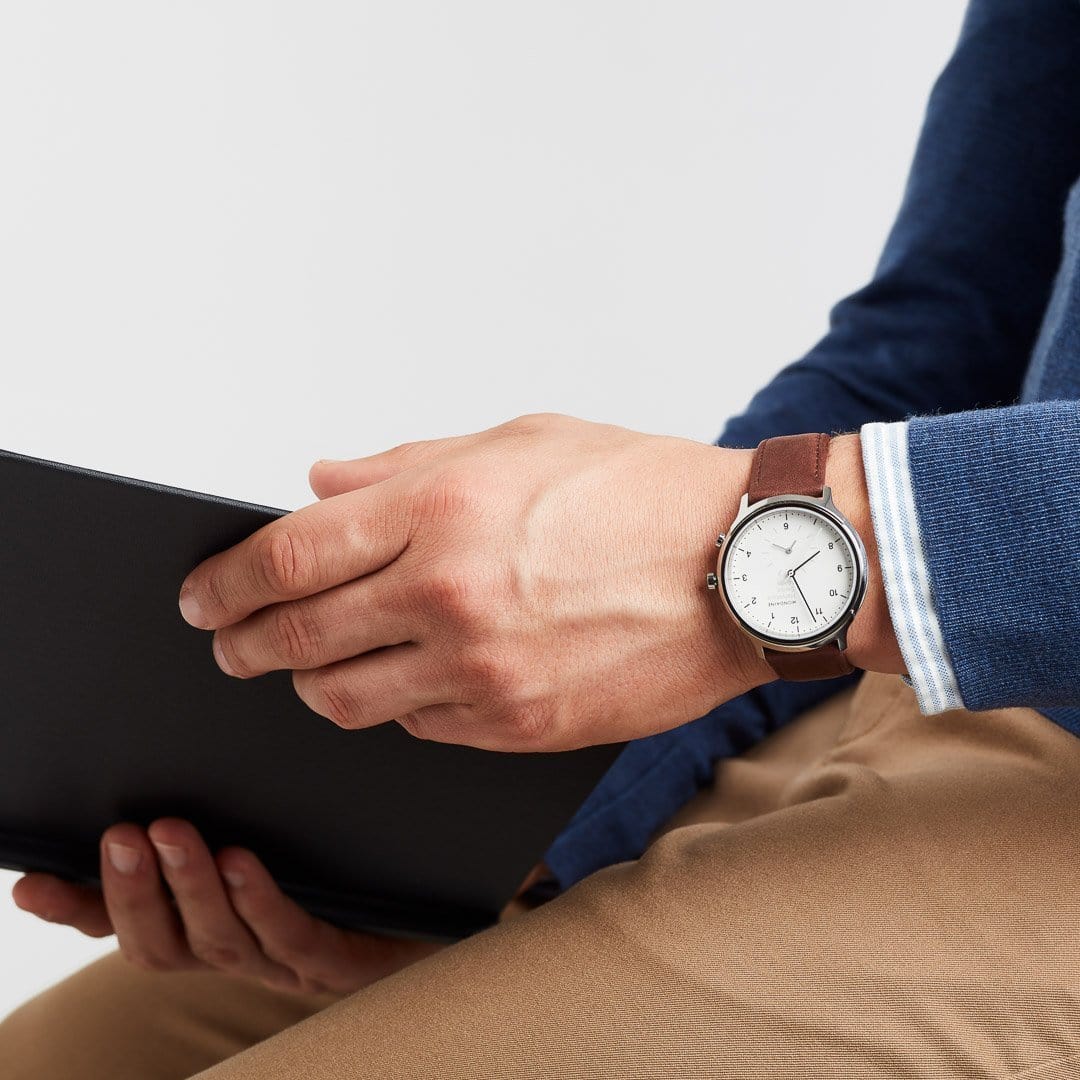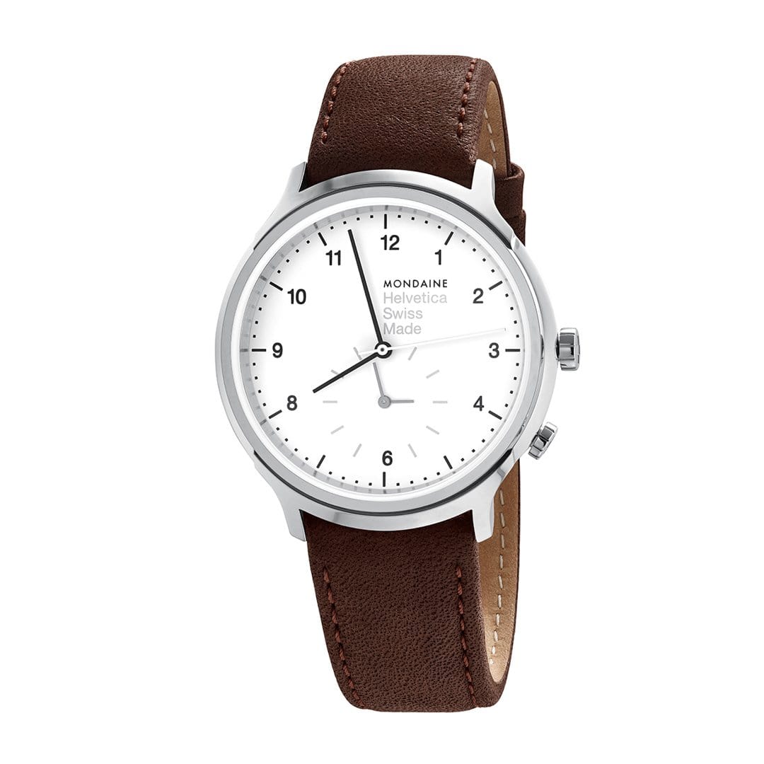 A loyal travel companion. The famous Helvetica font is known all over the world. With this watch, the typography travels the world on the wrist. Thanks to the innovative second time zone on the white dial, this Mondaine watch becomes a loyal travel companion. It is protected by a scratch resistant sapphire crystal and a brushed stainless steel case.