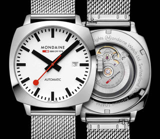 Die beiden neuen 39mm Zeitmesser verfügen über ein elegantes, quadratisches Gehäuse mit glatten, abgerundeten Ecken und einem widerstandsfähigen, entspiegelten Saphirglas. Das Schweizer Automatikwerk mit einer Gangreserve von 38 Stunden kann durch den Glasboden bewundert werden.