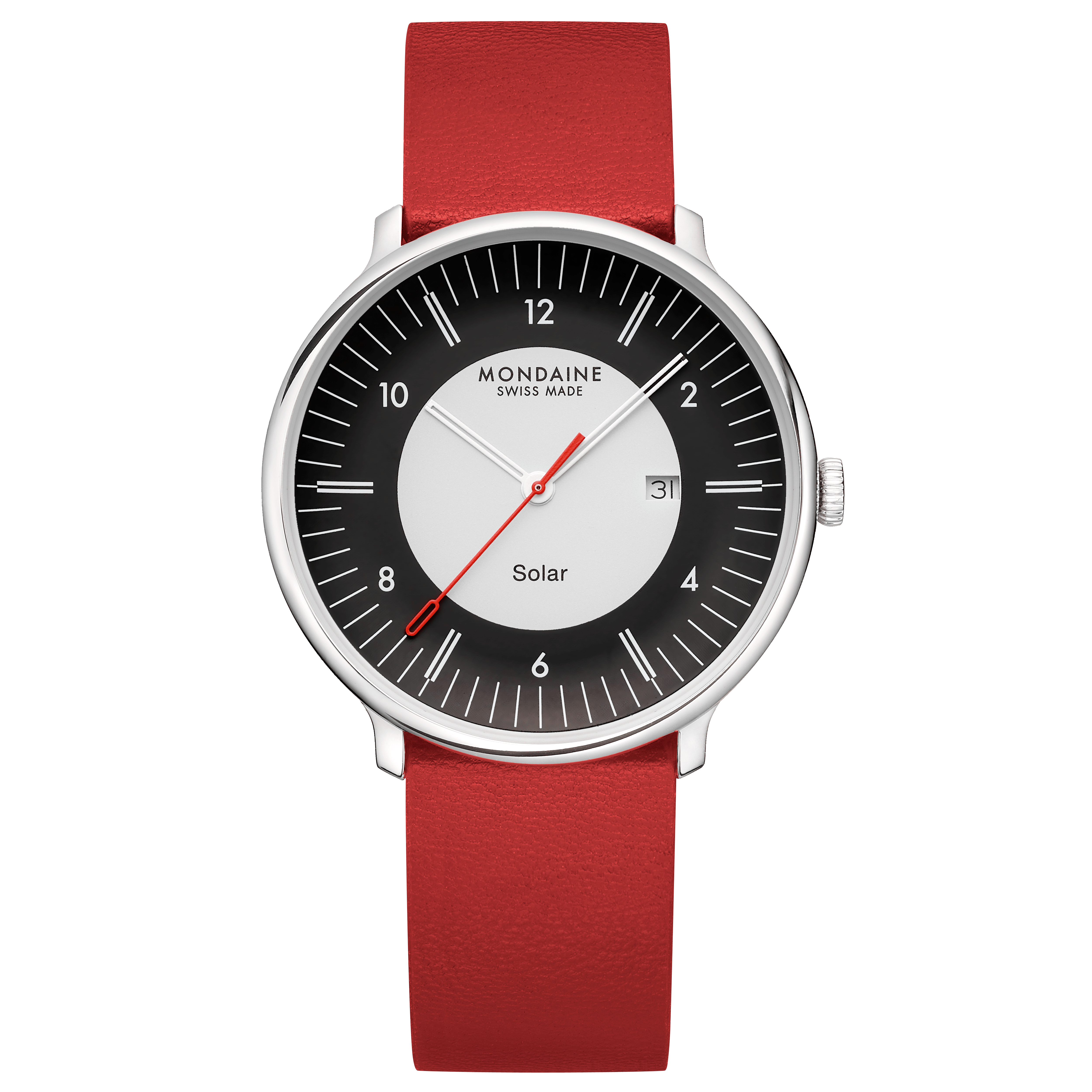 Diese Uhr verbindet zeitloses Schweizer Design mit zukunftsweisender Innovation. Das 41 mm Gehäuse ist aus 316L-Edelstahl mit bis zu 91 % Recyclinganteil gefertigt und wird von einem innovativen Solaruhrwerk angetrieben. Unter dem Zifferblatt befinden sich Solarzellen, die sowohl natürliches als auch künstliches Licht nutzen und die Energie in einer wiederaufladbaren Batterie speichern. Diese gespeicherte Energie versorgt die Uhr mit Strom, wodurch ein regelmässiger Batteriewechsel überflüssig wird und eine umweltfreundliche Zeitmessung möglich ist. Eine voll aufgeladene Batterie kann die Uhr etwa 8 Monate lang mit Energie versorgen, auch ohne zusätzliche Lichteinwirkung. Das konkave Zifferblatt mit leichter Transparenz ist mit einem doppelt gewölbten Saphirglas kombiniert, was für eine beeindruckende Tiefe und Eleganz sorgt. Das Design spielt mit dem Konzept der Dualität durch die Doppellinien auf den Zeigern und Indexen sowie auf der Spitze des Sekundenzeigers. Auch das Zifferblatt spiegelt dies mit einem schwarzen äußeren und einem matt-weissen inneren Kreis wider. Das Datumsfenster und die Wasserdichtigkeit bis zu 5 ATM sorgen für weitere, praktische Funktionalität. Das rote, vegane Traubenlederarmband wird aus organischen Weinproduktionsabfällen hergestellt und bietet umweltbewussten Stil. Mit ihrer mühelosen Mischung aus Vintage-Charme und neuesten Innovationen definiert dieser Zeitmesser die nachhaltige Uhrmacherei neu.
