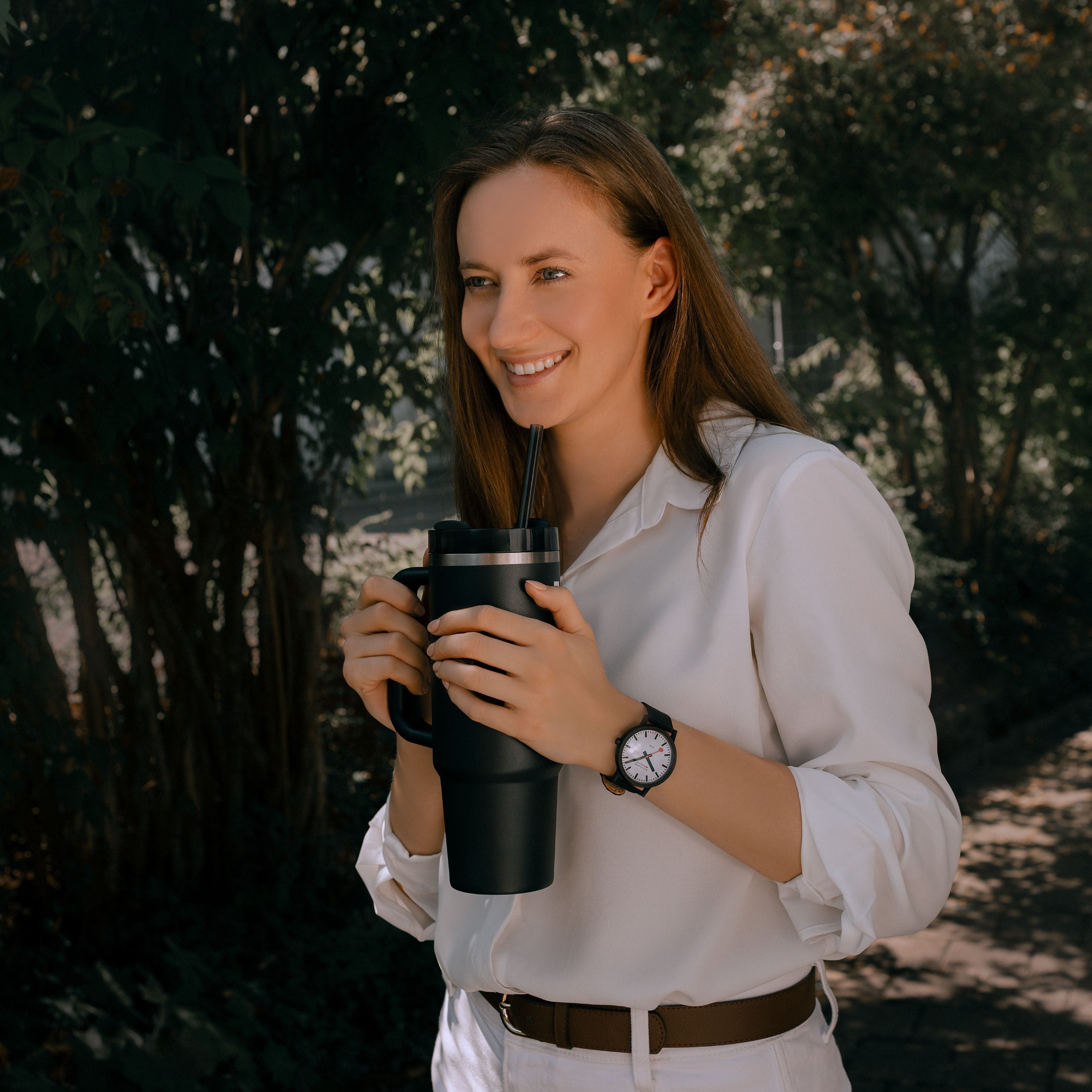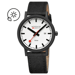 Die Mondaine essence solar verbindet ikonisches Schweizer Design mit moderner Nachhaltigkeit. Die Uhr mit einem Swiss Made Ronda Solarwerk wird vollständig mit Licht betrieben. Das Solarwerk lädt sich über jede Lichtquelle auf und läuft bis zu 8 Monate lang auch bei völliger Dunkelheit wenn es vollständig aufgeladen ist. Das 41 mm Gehäuse besteht aus einem erneuerbaren Rizinusöl-Verbundwerkstoff, während das schwarze Armband mit einem Innenfutter aus Naturkork für hohen Tragekomfort gefertigt ist. Mit seinem klaren weissen Zifferblatt, den markanten schwarzen Indizes und dem charakteristischen roten Sekundenzeiger ist dieser Zeitmesser sowohl zeitlos als auch zukunftsweisend – verantwortungsbewusst und auf Langlebigkeit ausgelegt.
